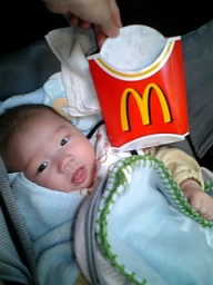 初めてのマック。 マックポテトLより顔が小さい。 |