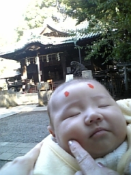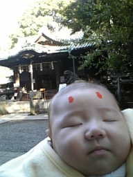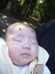 代々木八幡宮にお宮参り。 ジージからのケーキ♪ |