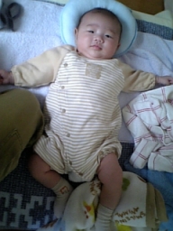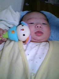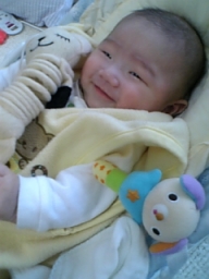 2ヶ月(10/21-11/20) ニッコリ笑う。 AB型のベビーカーで買い物などにいく。 生後2ヶ月目 新生児の1ヶ月目に比べてだいぶ人間らしくなってきました。あやすと笑ったり反応があるので向き合うのが楽しくなります。 ■なんごでおしゃべりをする アーとかウーウーとかキィーとか「なん語」という声をよく発するようになった。 目を合わせるとママとおしゃべりをしているようにアーアーアーアーとか語ってくる。 「ふんふん、そーなの、」などと適当に相槌を打ってあげるとまるでお話をしているよう。 ■ずいぶん笑うようになった ニコニコよく笑う。時に「ケタケタケタ」や「ヘヘヘ」と笑うことも。 ■自分の手をしゃぶるようになった 気がついたら自分の手を一生懸命なめてしゃぶっていた。手を口に入れたいみたいだけど、手が大きくて入らなくって、ウエウエッと言っています(笑) ■完全に人を目で追う ママが移動するとママを目で追う。はっきり目が見えるんだね。 ■寝る時におしゃぶりをつけて寝付かせる 落ち着いて結構早く寝付かせられる。 ■ぬいぐるみ同士で会話をさせて遊ぶとちゃんと興味を示す ■ミルク200ミリ ■一点を見つめている、、、 ウチの子は不思議とよく棚の上の同じ場所をずっと見ている、、じっと見てたまにニコニコっと笑ったり、、、もしかして第六感??!! |