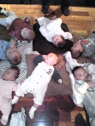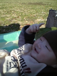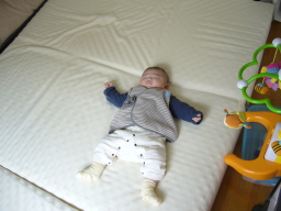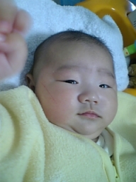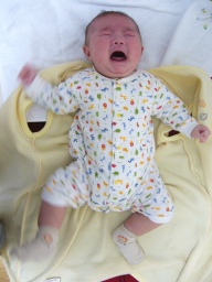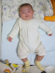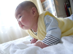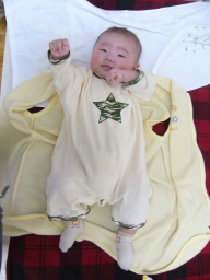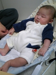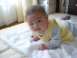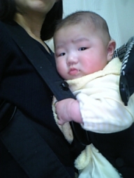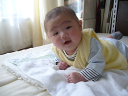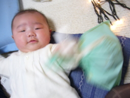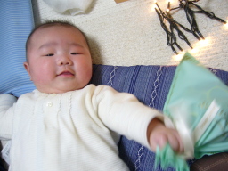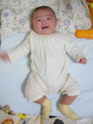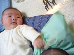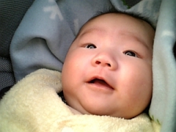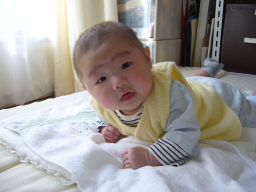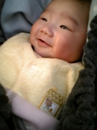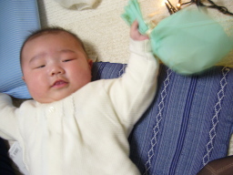 | 3ヶ月(11/21-12/20 ) ■よく笑うようになる。声を出してケタケタと笑う。 ■3.4ヶ月検診+BCG。ミルクの時間と重なりBCG大泣き。 ■おもちゃを渡すと握る。 ■ガラガラを持たせると握り少し振る。 |