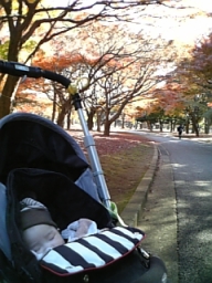 代々木公園、ばーばとママとピクニック♪ 紅葉が綺麗 |