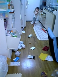 色んなとこの物をひっぱりだすので 部屋中大変なことに・・ |