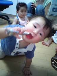 コタ「まなみ〜!」 たける君「僕のママだぞ〜!」 |