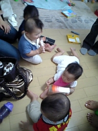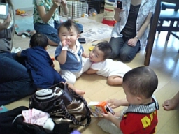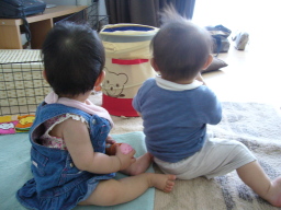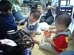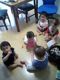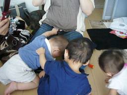 | ちふみちゃん宅にて。 みんなハイハイで自分の好き勝手 動くので大変なことに。 ウニウニしててかわいい♪ |