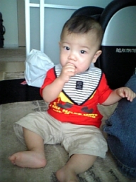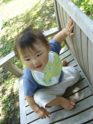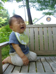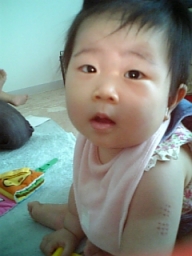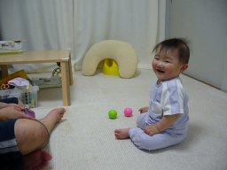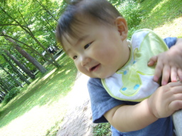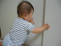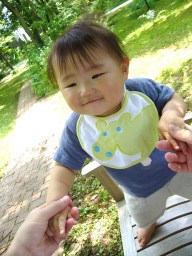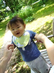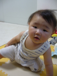 10ヶ月目(6/21-7/20) ■ハイハイがうまくなった! ようやくずりばいから卒業! 腰があがって長い間ハイハイがちゃんとできるようになった。 しかも高速ハイハイ♪ 結構速い。 ウキャー!!と叫びながらダダダダー!!と部屋中走り回る(そういう時は直線のみだけど)。 ■つかまり立ち、つかまり歩きは変わらない。 ■いたずらが大変。 いろんなところを開けてはものを引っ張り出す。食器棚、雑貨入れ、テレビラックなどなど。 財布のカードや小銭を出すなど、手先が器用に。 ■ものを口に入れる。 なんでも口に入れたがる。 一度不注意でカビキラーを加えてしまった、、、あわてて小児科へ。 一瞬加えただけでシュッとでていなかったので大丈夫だったが、怖い怖い、、、、ごめんねコタロウ、、、 ■マママママ、パパパパパなど言う。 タイミングがいい時にいうから、まるでパパママがわかっていってるみたい。 でもそれはたまたま。 ■ボーロやパンを手で取って自分で食べるように。 ボーロのような細かいものを持てるように手先が器用になってきている。 自分の手で口に運べるようになった。 |