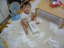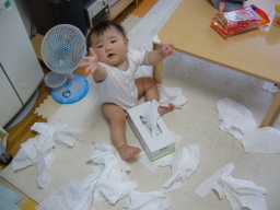 この時期、いたずら満開! あーあ、ティッシュが・・・ |