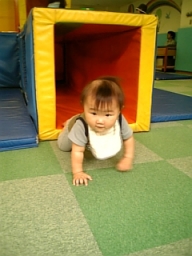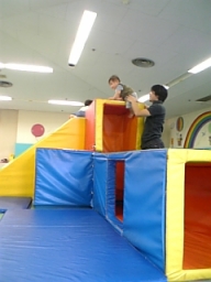 | 近くのスポーツセンター。 トンネル大好き♪ 幼稚園児くらいの子がたくさんいるとこだけど、 こたろうはキー!と果敢にせめていきます! 強い子だ・・ |