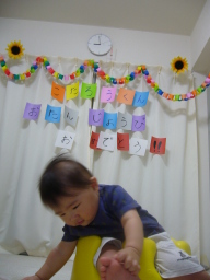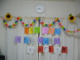 誕生日の気分が盛り上がるように お部屋の飾り付けをしてみました♪ |