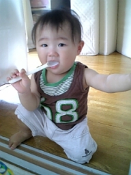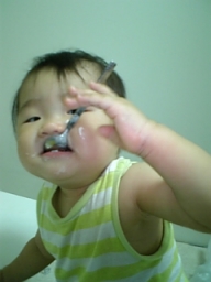 スプーンを器用に使うよ! |