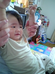 1歳0か月目(8/22-9/21) ■まだ歩かない。 1歳を過ぎたがまだ歩かない、、 ハイハイはもうベテランで高速ハイハイ。 ■物を持たせる。 おもちゃや本など、コタが大人の手を持って反対の手に持っていた物を持たせる。 読んで、遊んで、ってことなのかな? ■指差しができるようになった! 人さし指を1本立ててものを指差せるようになった。 まだあんまり意味がなくても指さしてる。 ■物を食べさせる。 ママに手やスプーンで食べ物を無理やり口に入れさせ食べさせようとする。 ■大人と同じようなものを食べさせ始める。 やわらかく食べれそうなもををとりわけであげるようにする。 合同誕生日会でもうすでにみんなそんな感じだったのでコタもそうしてみることに。 ポテトフライとか結構なんでも食べれるのね、 ■歯が上4本、下3本生えた! ■おもちゃの車、電車遊びができるようになった。 おもちゃの車や電車を手で前後に引きずって遊べるようになった。 ■ドアノブが下に押すタイプのドアが開けられる |